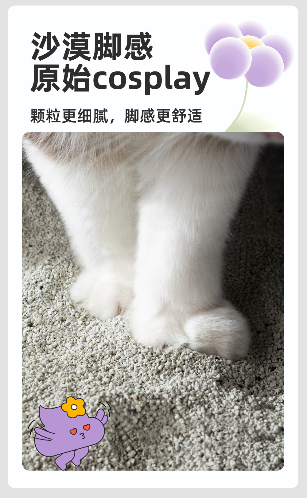 > 新品上市丨把沙漠脚感还给猫咪!铲客天然钠基矿砂,近无尘快结团!